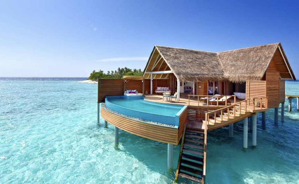 Experience the ultimate in luxury with our overwater bungalows featuring traditional thatched roofs, private decks, and direct access to the pristine turquoise waters of the Bahamas.